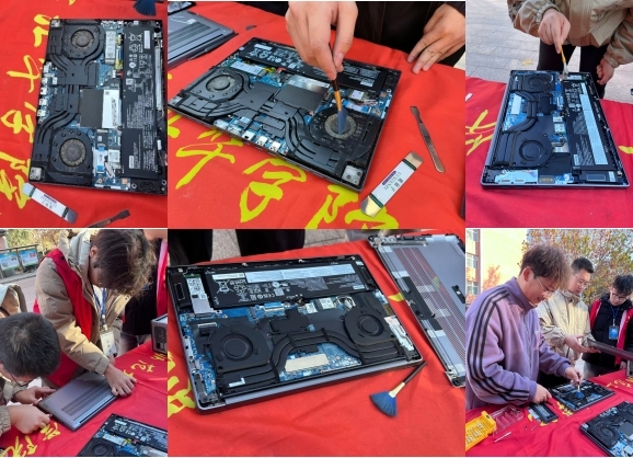 工学部电脑小分队的志愿者身着统一的志愿者服装,手持专业的工具,按照事先的分组,有条不紊地开展工作。他们耐心细致地为师生们的电脑进行拆解、清理风扇和散热片等关键部位的灰尘、重新安装,同时从软件和日常操作方面为大家讲解电脑维护的基本知识,确保每一台电脑都焕然一新。