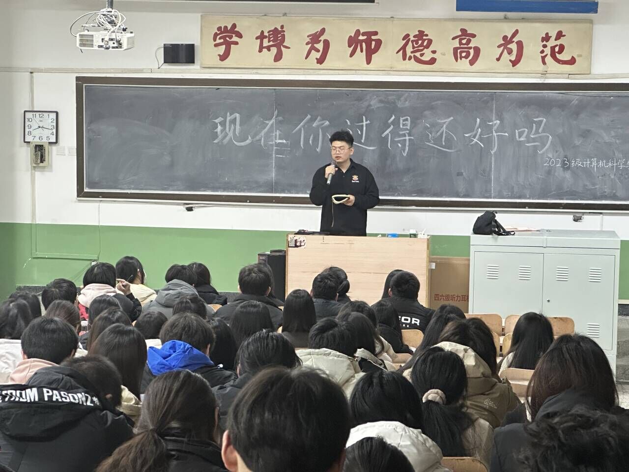大学二年级的学习生活即将过半,12月1日在第一教学楼212教室,2023级计算机科学与技术1、2、3班迎来了一场别开生面的主题班会——“现在你过得还好吗?”。此次班会不仅是一次心灵的对话,更是一次关于学习现状、大学职业生涯规划的深度交流与探讨,旨在帮助同学们更好地认识自我,规划未来,携手共进。