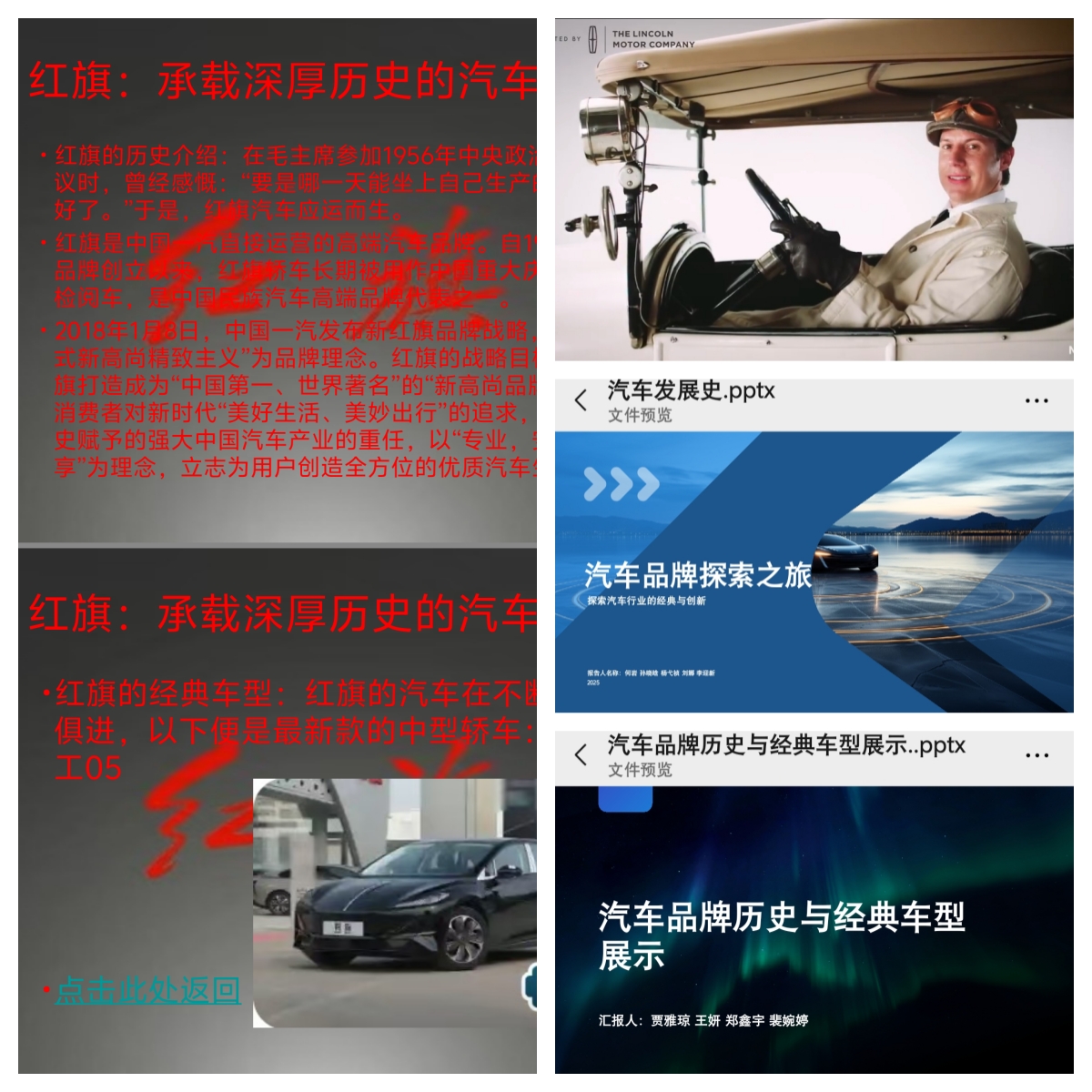 自活动启动以来,协会成员积极参与,通过个人调研或团队合作的方式,深入探索汽车品牌的发展历程。在活动期间,同学们热情高涨,提交的作品包括PPT和短视频,内容丰富,视角独特。其中,部分作品以汽车品牌的兴衰为主线,生动描绘了汽车行业的时代变迁;另一些作品则聚焦经典车型,通过分析其设计和技术特点,详述了汽车工业的发展轨迹。