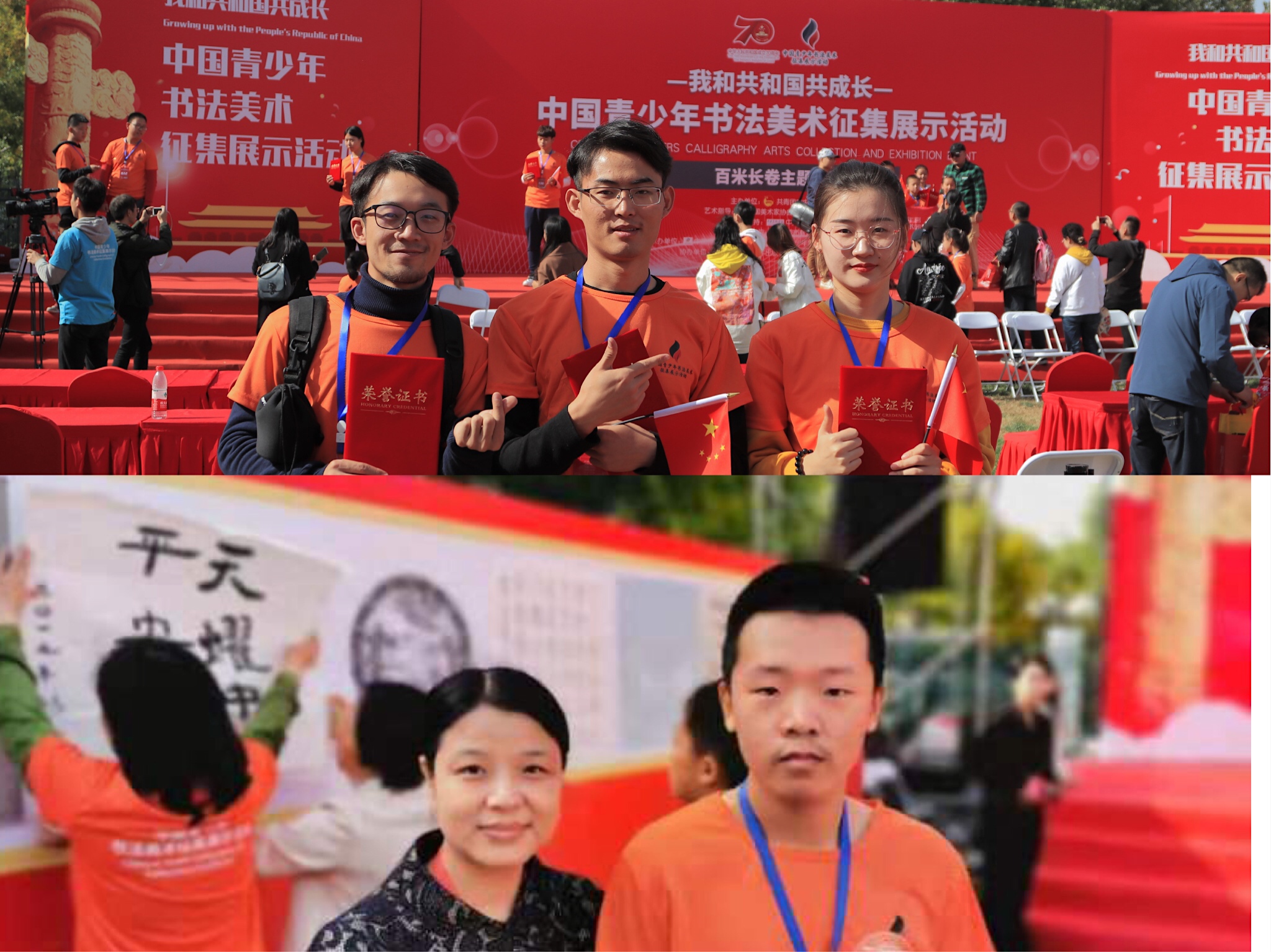 10月20日,“我和共和国共成长”中国青少年书法美术征集展示活动——百米长卷展示活动在北京青少年宫隆重举办。william威廉中文官网艺术学部2016级美术学专业王羽莎、逯禹、刘春军,2017书法学专业谢梓杉4名学生受邀前往北京,与来自全国的140名画家进行现场创作,通过作品表达爱国情感。