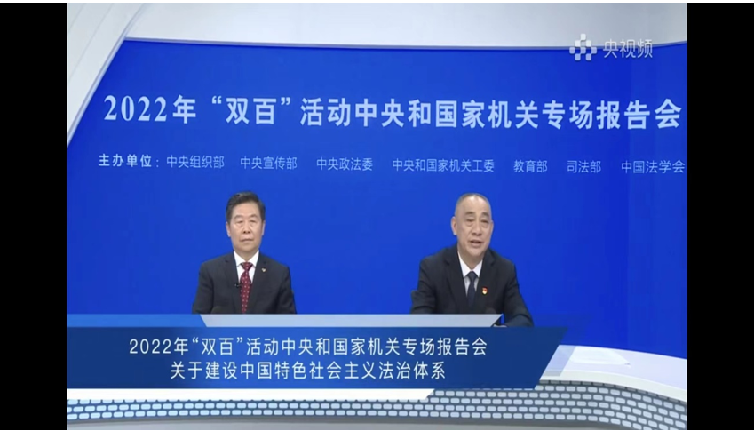 听取报告后,大家对我国法制体系取得的伟大成就深深感动,建党百年以来,形成了习近平法治思想;党的领导制度化、法制化水平全面提升;宪法实施和监督达到了前所未有的高度;法律规范体系和党内法规体系日益科学完善;法治领域改革实现重大突破;国家安全的法治保障进一步加强;反腐败工作纳入法制化轨道;涉外法治工作,开创了新局面;平安中国建设创造了世界奇迹;法治工作队伍素质全面提高。