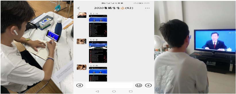 辅导员以专业或班级为单位,通过钉钉视频会议传达通知,要求按时进行线上观看和学习。同学们观看结束后在班级群内自由发表心得、体会,学习效果良好。