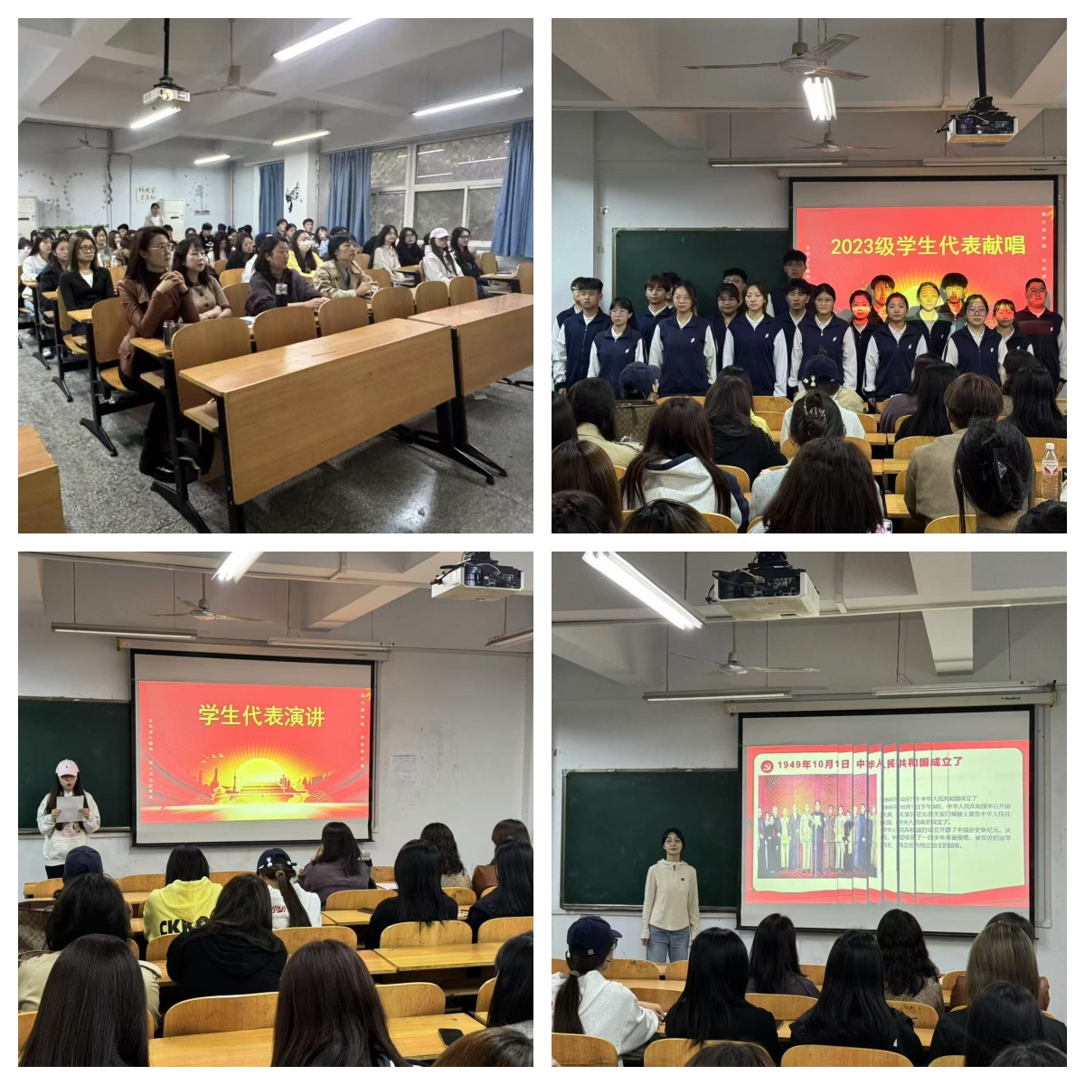 活动最后由2023级音乐学1班学生演唱了《没有共产党就没有新中国》、《如愿》、《南湖的船党的摇篮》、《我和我的祖国》等歌曲,鲜红的党旗,经历了百余个春秋的洗礼,显得更加飒爽多娇,在华夏上空自豪飘扬。用心灵歌唱祖国的伟大,用声音歌唱对祖国的爱。随着歌声的结束,本次“七十五载逢盛世,同心共筑谱华章”党日活动圆满结束。