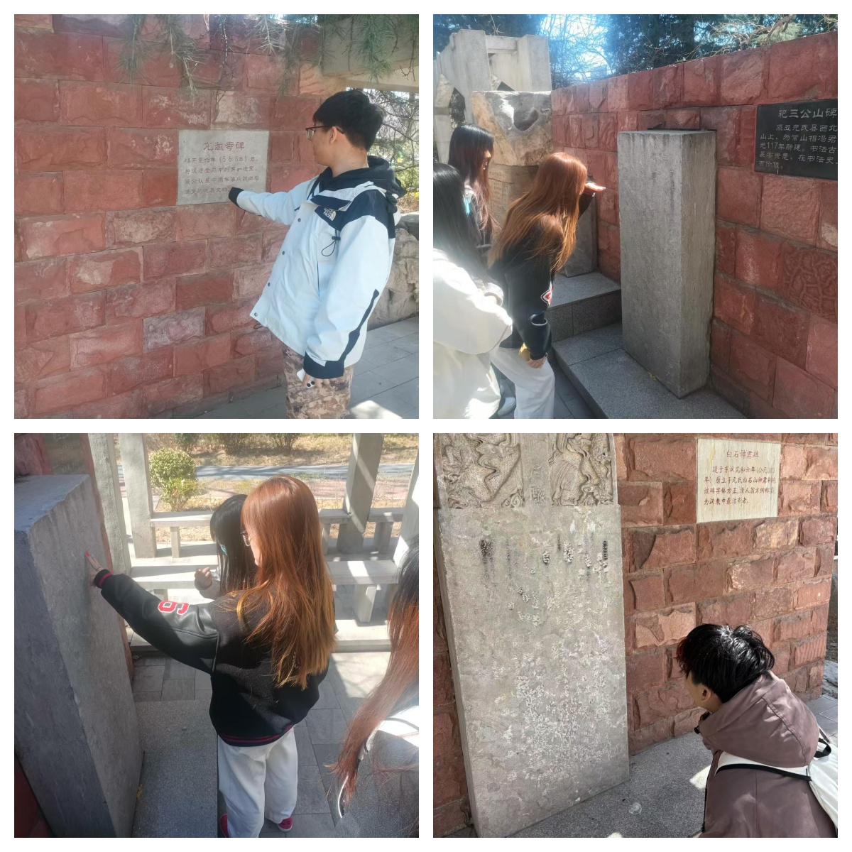 首先参观了位于新石南路上的石刻园公园,重点考察了园内的龙藏寺碑(复刻)和白石神君碑(复刻)。龙藏寺碑约建于东宫六年,其书法风格展现了篆书向隶书的演变脉络,师生们对碑文的保存状况及艺术特征进行了详细记录与分析。白石神君碑(复刻)则因其清秀典雅的风格备受清代书法家翁方炳推崇,同学们围绕其历史背景与书法技法展开了深入探讨。通过实地观摩,学生们不仅巩固了课堂所学知识,更直观感受到传统书法艺术的深厚底蕴。