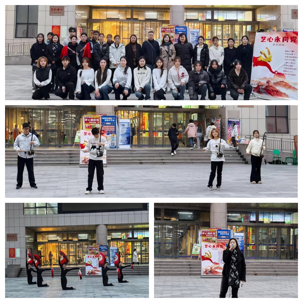 10月23日下午,艺术学部第一党支部在食堂东广场成功举办“艺心永向党”音乐演出。本次音乐演出是党支部精心策划的主题党日活动。旨在通过音乐艺术实践深化主题教育成果,展现支部党员与音乐学专业学生的精神风貌和专业素养。